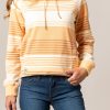 Details: Long Sleeve. Adjustable Hood With Knotted Drawstrings. Front Kangaroo Pocket. Double Stripe on Hem and Sleeves. Color Block Sleeves to Body. Large Embroidered Horn Logo Across Chest and Small Kimes Ranch Logo By Pouch Pocket. Triple Button Front Placket