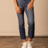The Audrey is for our low-rise fans. This street jean is a classic bootcut with a fitted knee and a fitted thigh. featuring a simple back pocket design with a small Kimes Ranch horn logo on the left back pocket.