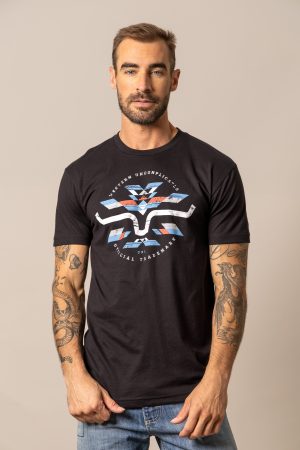 The Circular Serape Tee puts a bold Southwestern twist on a classic. Featuring the iconic Kimes Ranch logo reimagined with desert tones and geometric serape-inspired patterns. this shirt blends tradition with statement style. Soft and comfortable with an everyday fit. it’s made for those who carry their western roots with confidence.