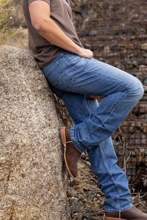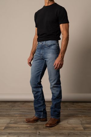 The James features a lower rise with a straight fit and straight boot leg in an wear-every-day Mid Wash. An integrated knife pocket and light stitching perfectly accent these traditional jeans.