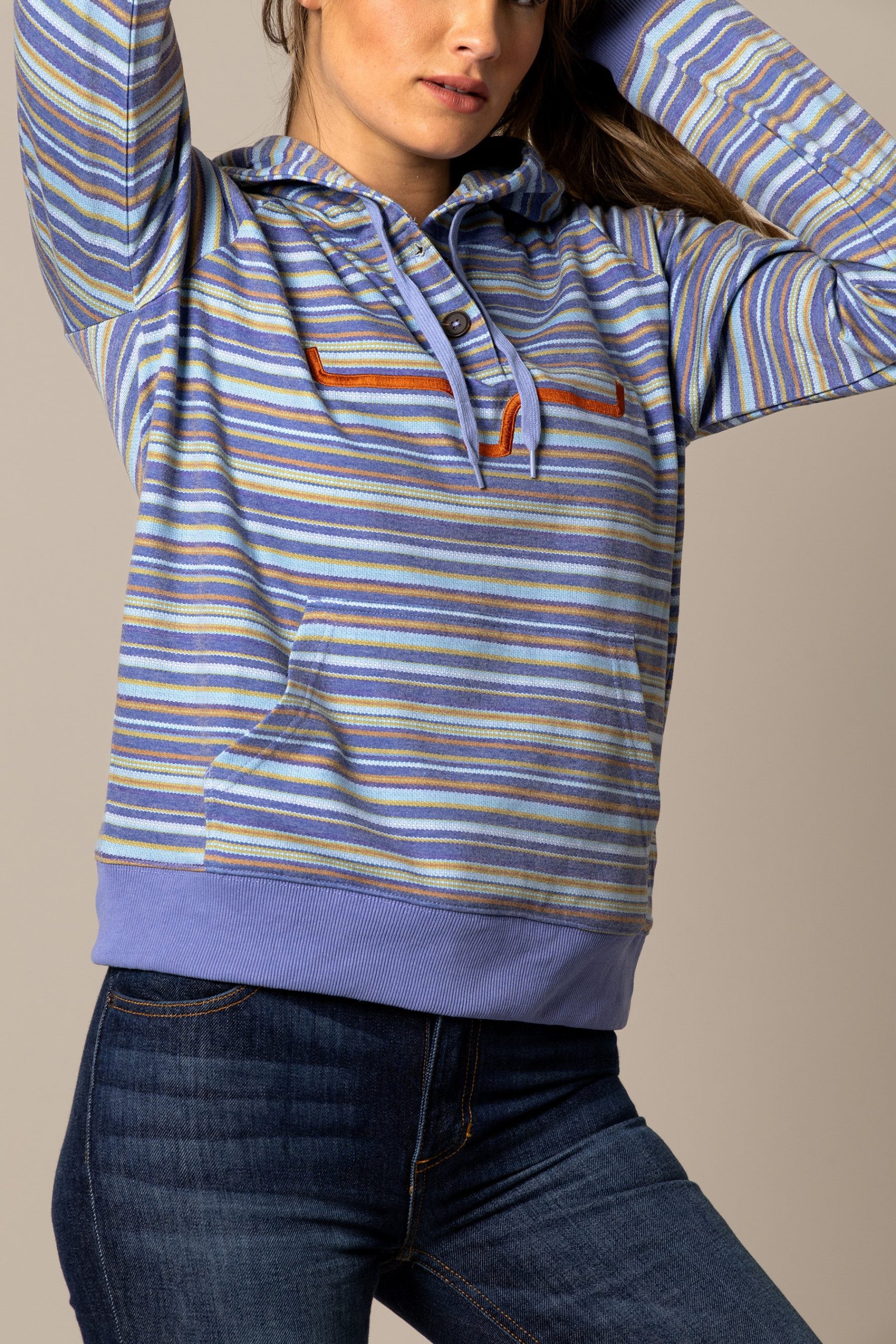The Kenzie combines comfort and style with a modern twist. The patterned body and hood contrast against the solid color sleeves that create a dynamic colorblocked effect. The button placket neckline adds extra ventilation. A spacious kangaroo pocket provides convenience. and our iconic longhorn logo takes center stage.