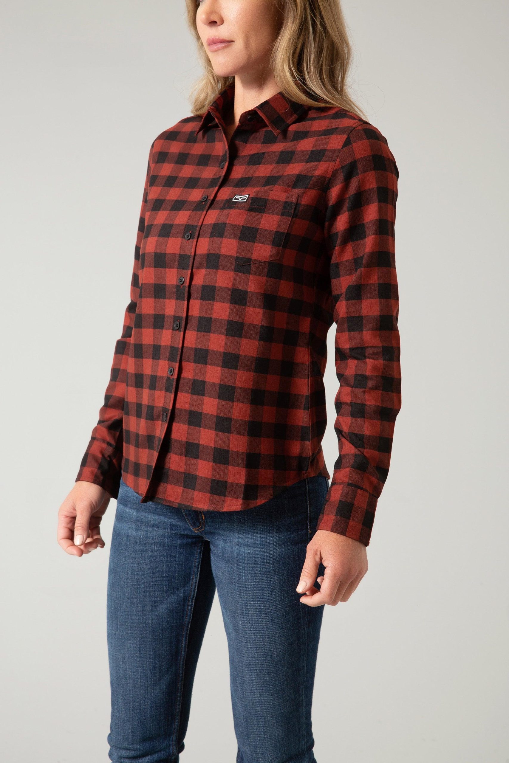 The Garrison. Your favorite plaid. now with Coolmax technology. The front pocket and blended fabric make this shirt ready for any workload. but the stylish plaid pattern makes this the perfect flannel for layering over a tee or under a utility jacket. This classic style provides the warmth and comfort you expect from a flannel. but also maximized breathability to keep you comfortable in a flattering ladies cut.