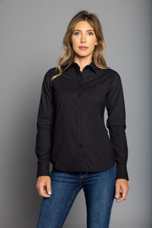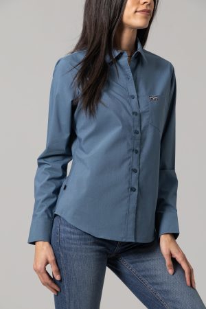 A modern take on a classic women’s western shirt. the Linville Solid is a stylish staple piece in any wardrobe. Moisture wicking Coolmax® fabric allows for easy seasonal transition while the classic button front and single pocket with timeless western tailoring that flatters the figure. The solid variety of colors go with anything. The Linville can be dressed up or styled casually – whatever meets your style.