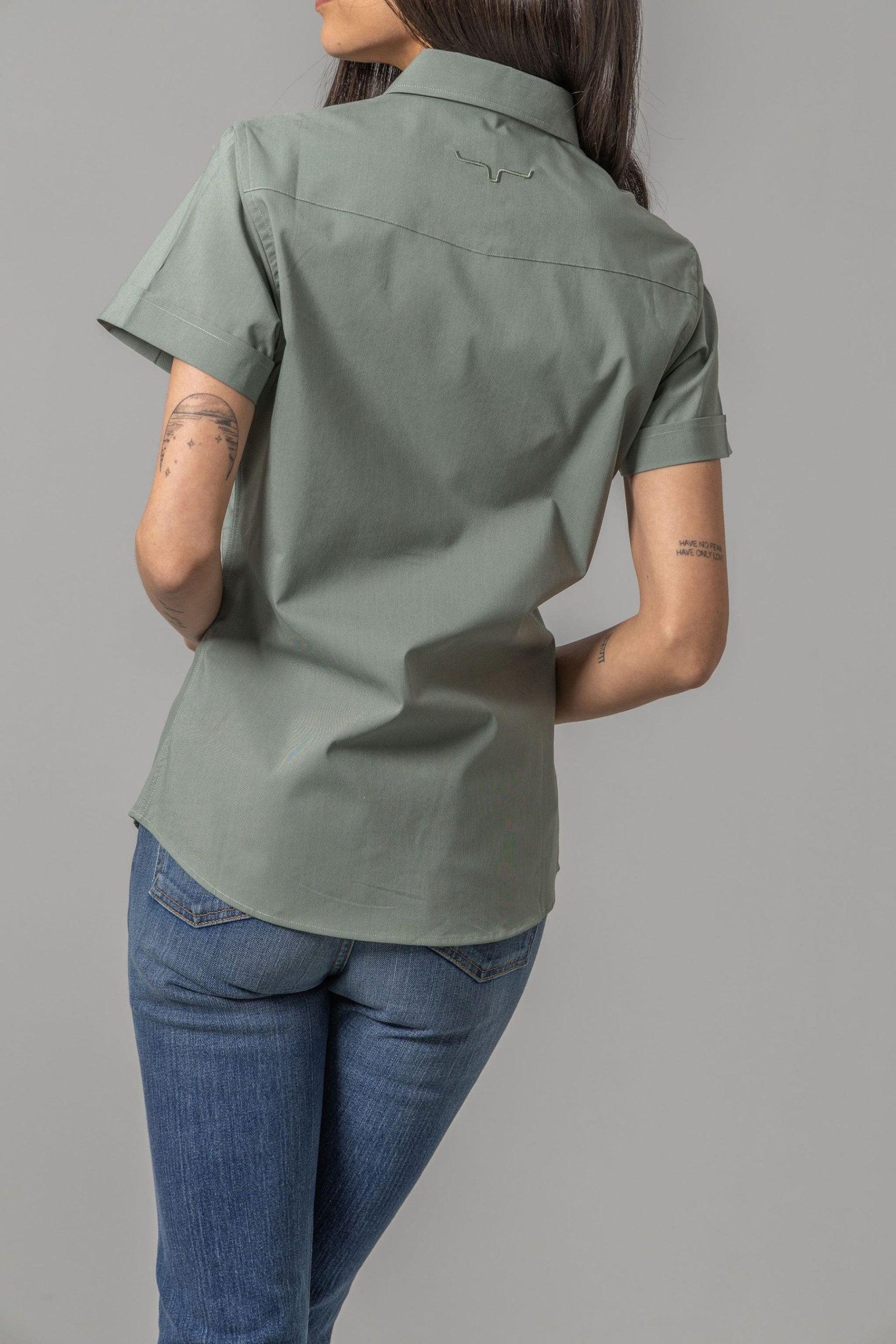 Now with short sleeves. our Linville is a modern take on a classic women’s western shirt. making it a stylish staple piece in any wardrobe. The tonal horn embroidery on the back adds a subtle touch of elegance. while the flattering western fit remains iconic to the KR brand. This updated design combines timeless style with a modern twist.