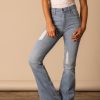 Style: Mid-Rise. Trouser Fit. Wide Flare.The flare leg opening will sit wider over your boots and won’t stack like a traditional bootcut. Your usual inseam may touch the ground with boots on.