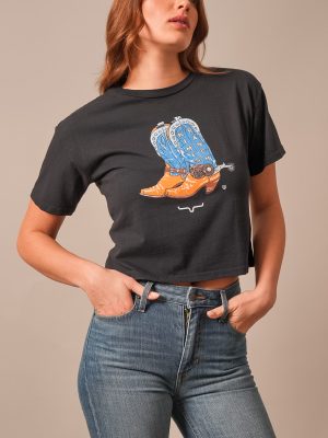 Boots. attitude. and effortless Western confidence the Lucky B Boots For Walkin’ Tee blends feminine edge with true cowgirl spirit. Designed in collaboration with Lucky B Designs. this cropped tee features a hand-painted cowboy boot graphic. celebrating craftsmanship and the artistry of the American West. Made from soft. pigment-washed cotton. it delivers that perfectly broken-in feel from day one. With its flattering cropped fit and bold western illustration. this tee is made for cowgirls who want to honor tradition while owning their style — from the barn to town and everywhere in between.
