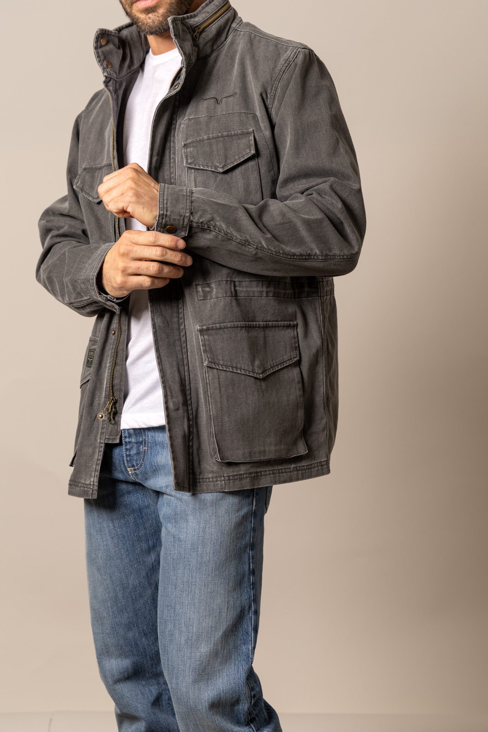 Ready for anything. The M65 jacket mends military-inspired style with modern practicality. Crafted with durable herringbone fabric. it offers both warmth and weather resistance. A packable hood ensures you’re prepared for unexpected rain. and the contrasting removable quilted vest liner provides extra insulation on colder days. The utility jacket silhouette is elevated with a hidden zipper closure. secure flap chest pockets. and convenient hand pockets. This jacket is as tough as it is stylish. making it the perfect outerwear.