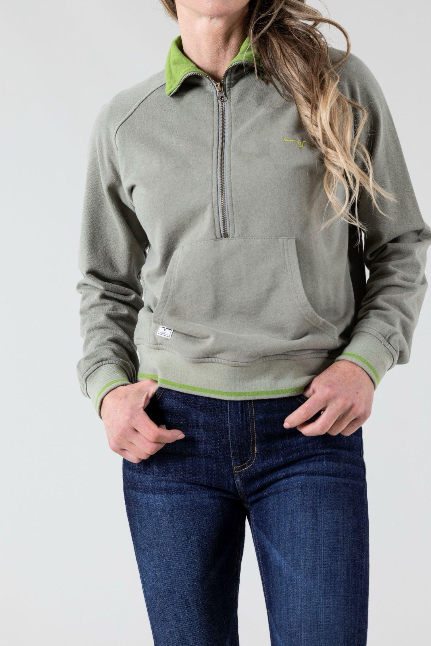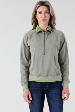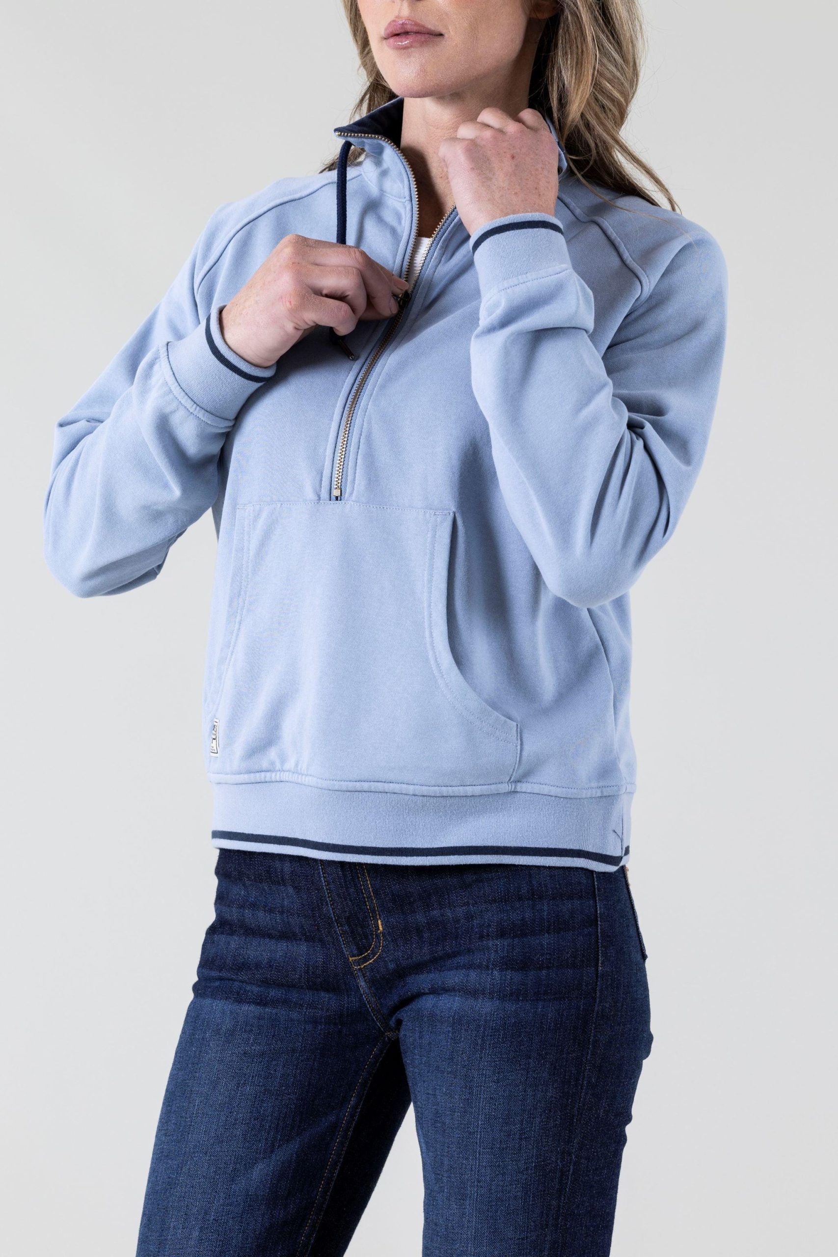 An updated take on a classic ladies’ pullover. the Mabeline Cropped Quarter Zip is made of cozy french terry. Thoughtful details include accenting drawstrings at the neck and matching logo.