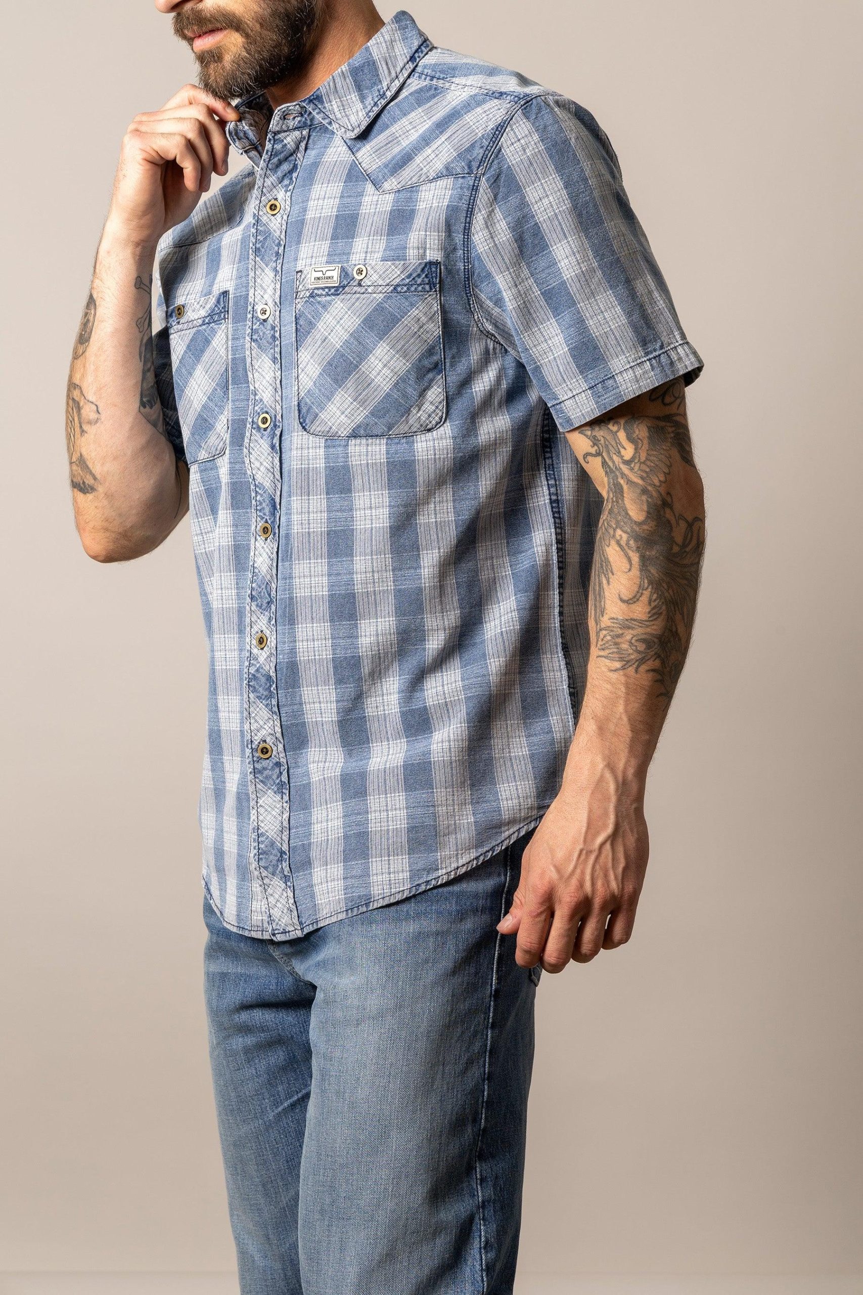 Experience timeless style and rugged comfort with the Shifter a men’s chambray short sleeve button-up. Crafted from premium denim chambray. this versatile shirt offers a distinctive look. exceptional durability. and security with its metallic buttons. Available in a variety of solid. stripe. and plaid color options. this shirt allows you to express your unique style.