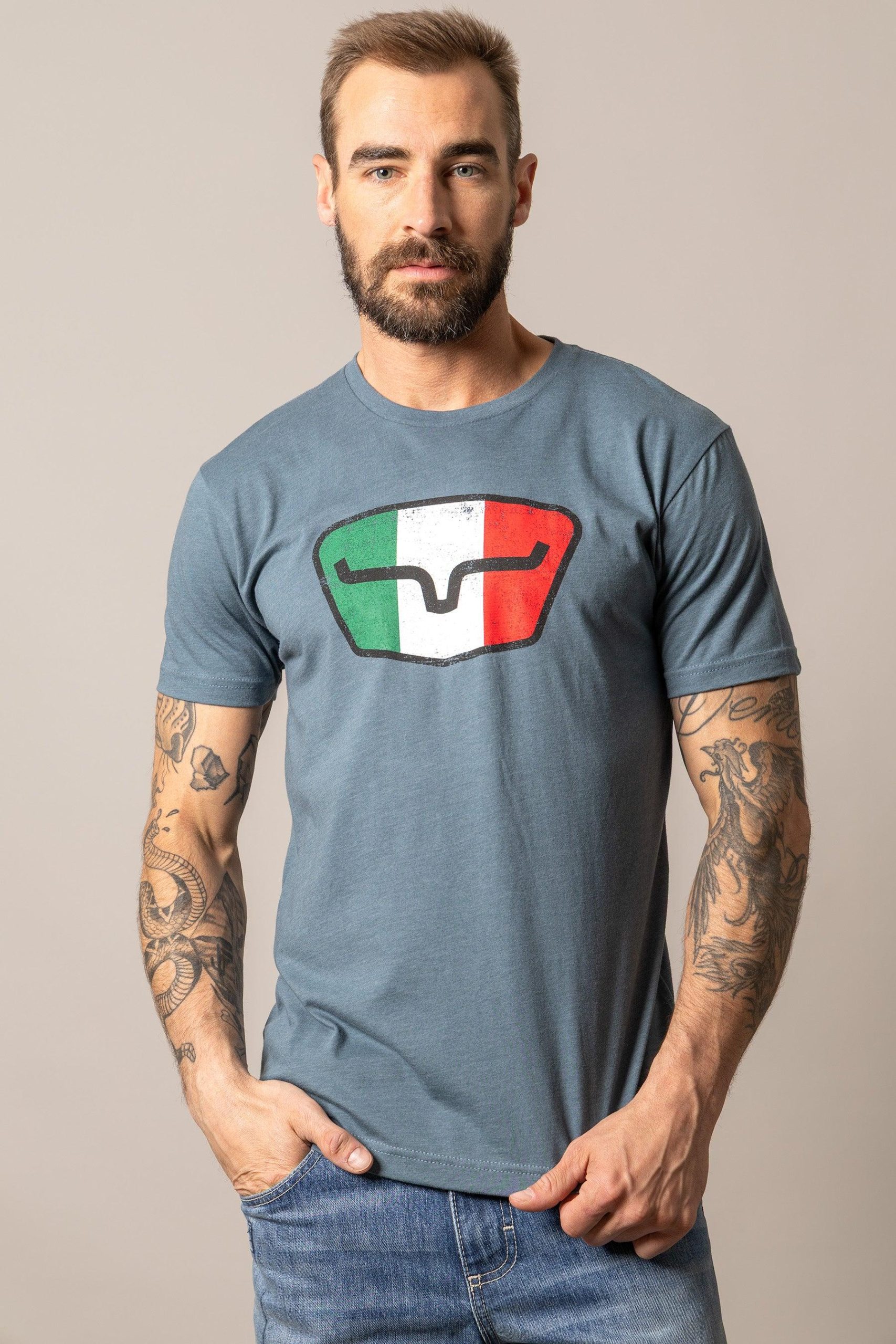 Represent your heritage and Western tradition with the Kimes Ranch Men’s Tri-Color Tee. Designed for comfort and style. this standout piece features our signature horns logo with a bold. eye-catching design featuring the colors of the Mexican flag. Built for durability. made to be worn anywhere.