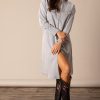 Inspired by our iconic . our Denim Dress version is a must-have. Made from premium denim with stretch. this dress features classic western details like a pointed collar and full button-down front. The flattering silhouette is accentuated by a tie belt. and the iconic Kimes Ranch longhorn logo brands the chest pockets and back yoke. Layer over your favorite t-shirt dress to run into town or wear it alone with boots for a nice night out. This is more than just a dress; it’s a statement piece that embodies the spirit of the West.